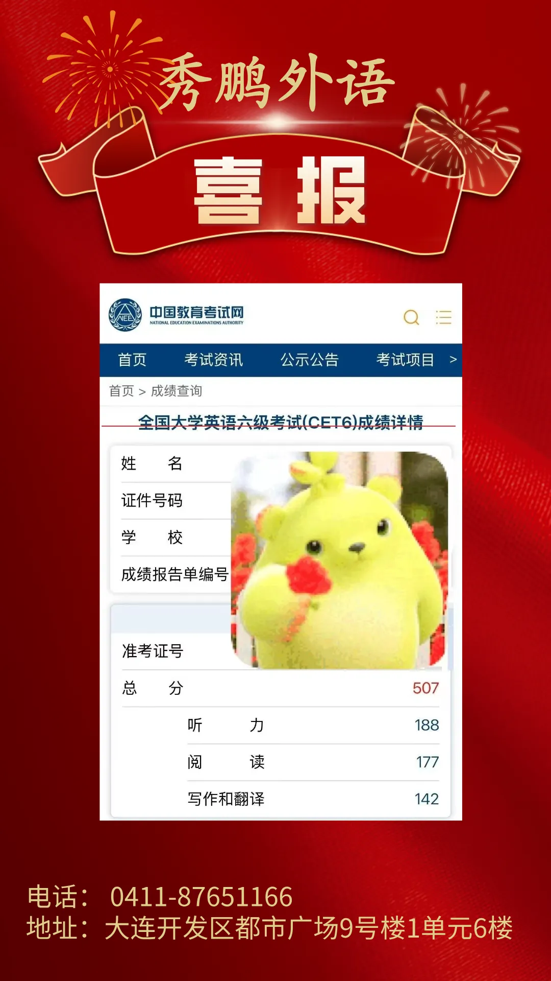 一次考试不能定义你的努力!学校将持续开设英语四六级班、考前辅导讲座、一对一等课程,助力同学们下次考试成功通关。