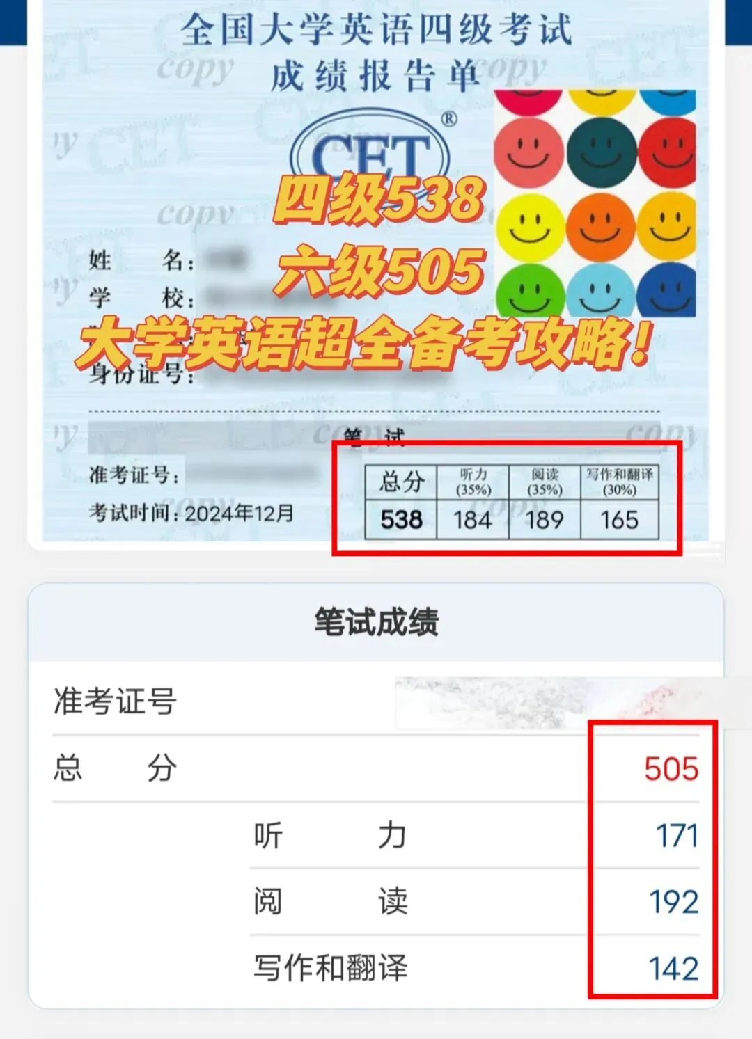 上次四级查成绩和&这次六级查成绩全都是早上六点自然醒查询的,心里主打得紧张哈哈哈,昨天甚至还让豆包给我估了一下,没想到505真是一分不多一分不少😆