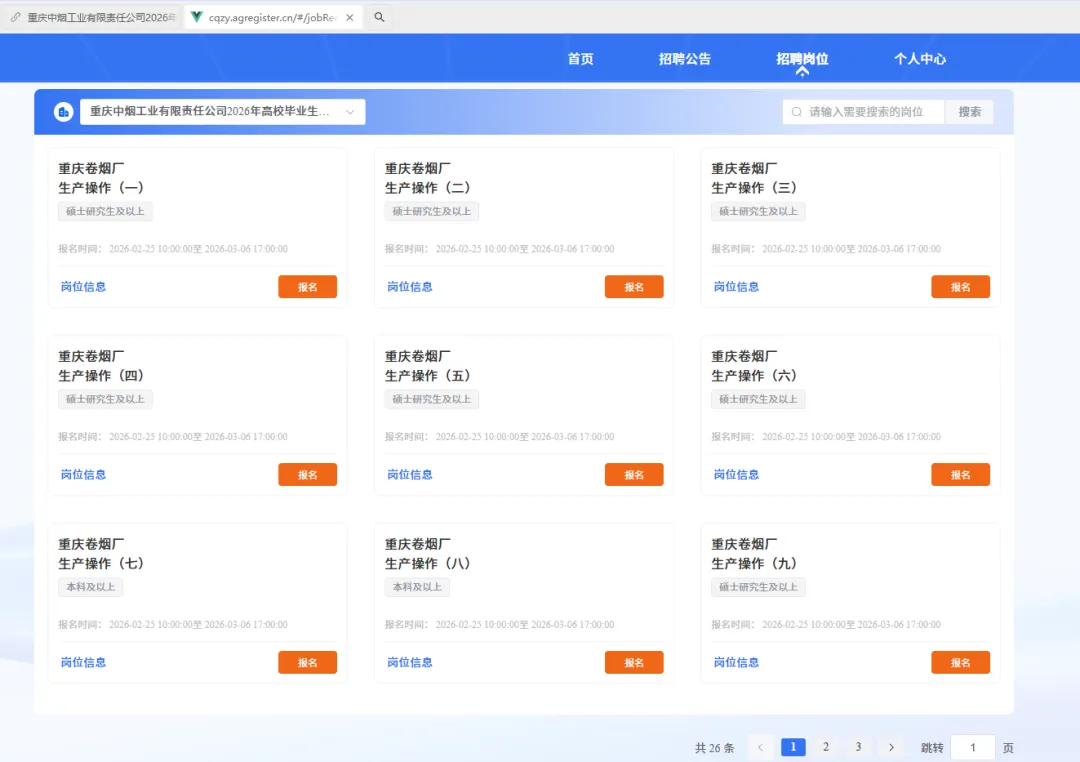 附件:1.重庆中烟2026年员工招聘计划表