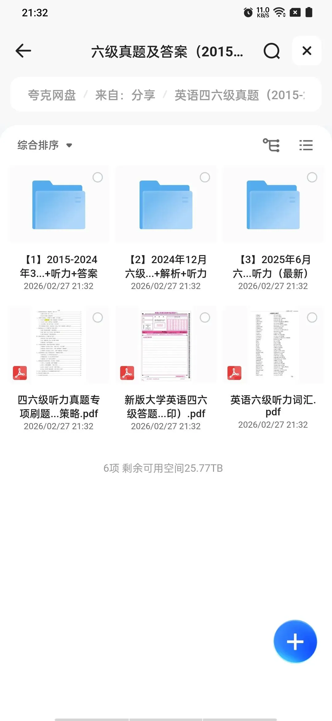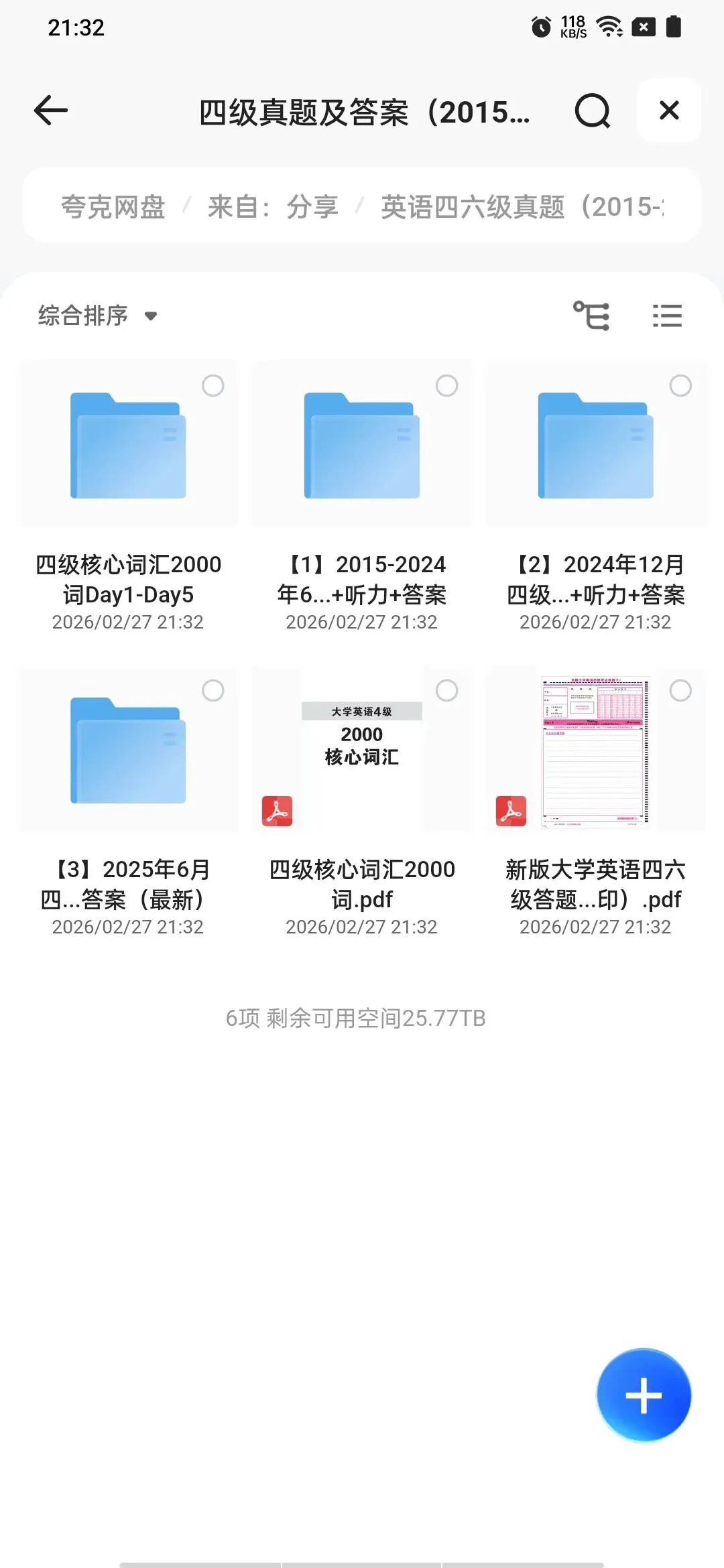 我用夸克网盘给你分享了「英语四六级真题(...025)」,点击链接或复制整段内容,打开「夸克APP」即可获取。