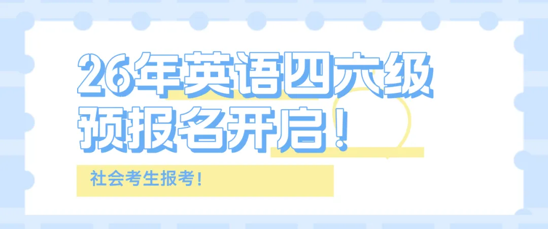 社会考生(小自考)26年6月英语四六级预报名开启!