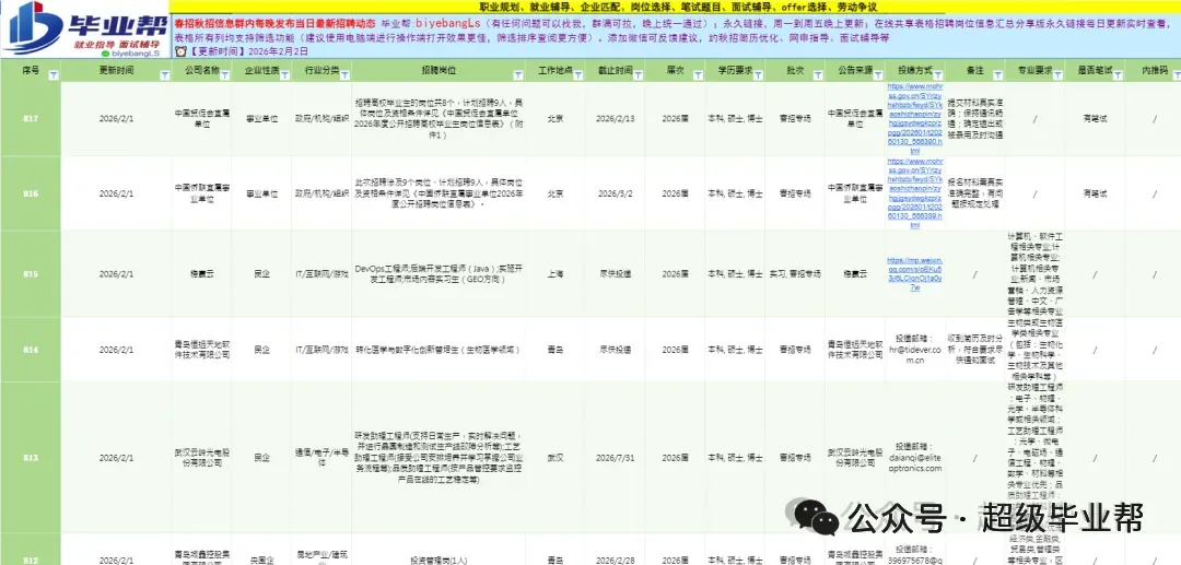 包含秋招正式批和秋招补录以及后续的所有春招,信息群pro版更新至所有招聘结束,每日更新,一直更新到2026年7月初!
