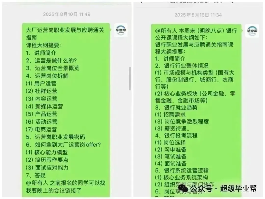 4.群内不定时各行业公开课,为大家讲解各行业最前沿知识补充;提升视野宽阔角度,增加面试通过率;针对行业政策解读、发展趋势分析、业务流程梳理。