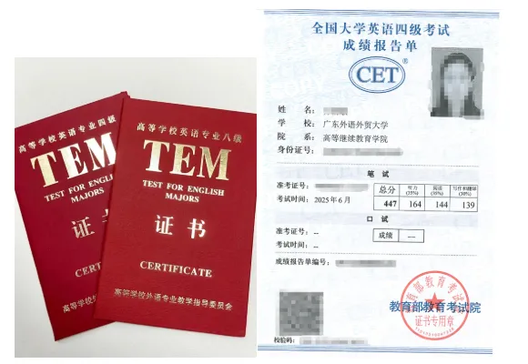 双重收益:毕业后获得国家承认的成人高等教育毕业证书(学信网可查),在读期间考取四六级、专四专八证书,助力职场晋升、学历提升。