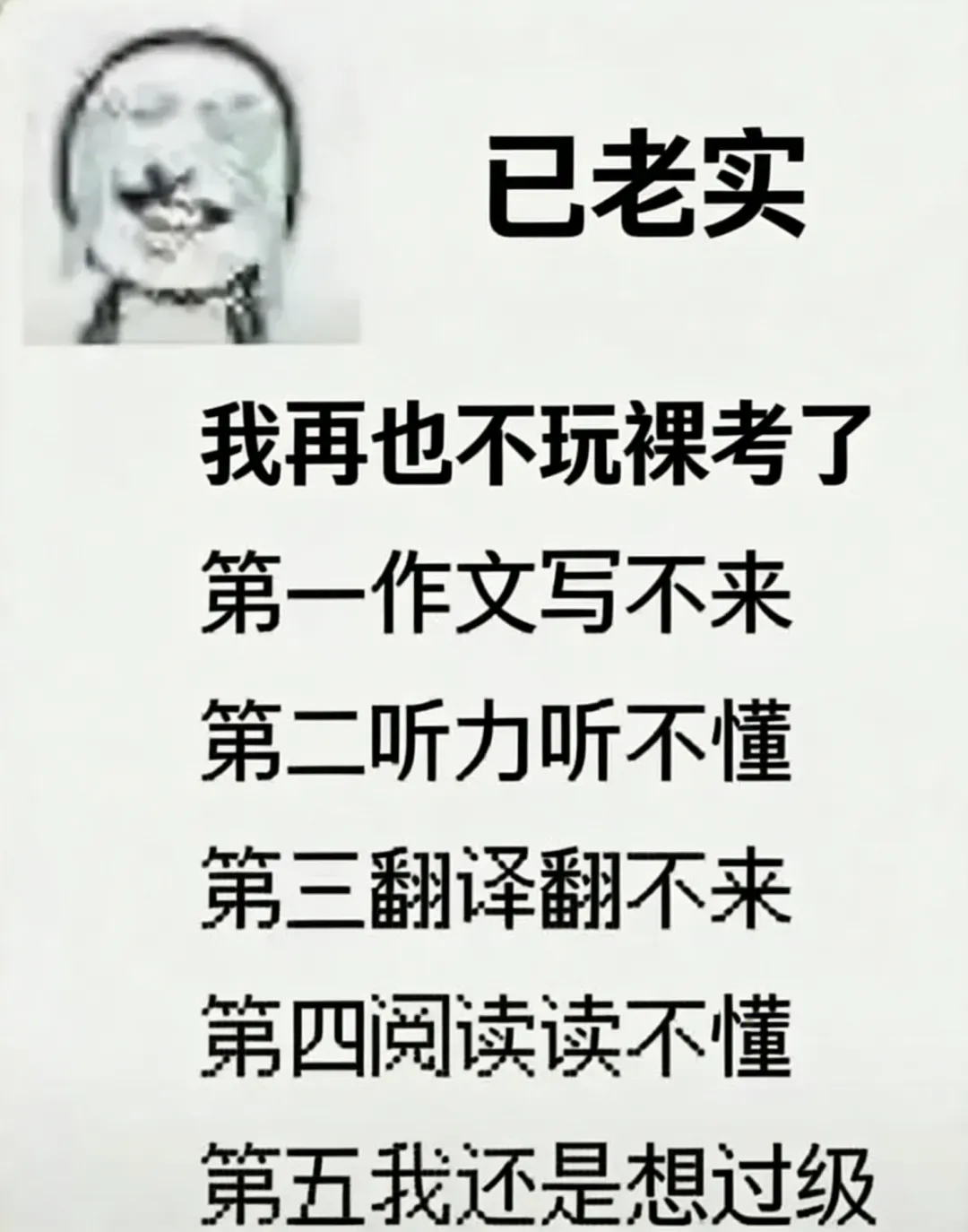 有个学生,四级考了三次没过。