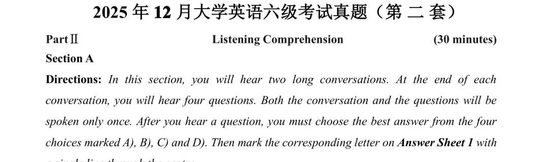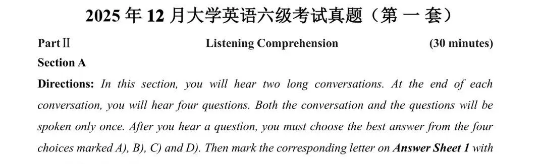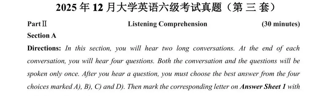 2025年12月英语四级真题试卷及答案解析(第一套)