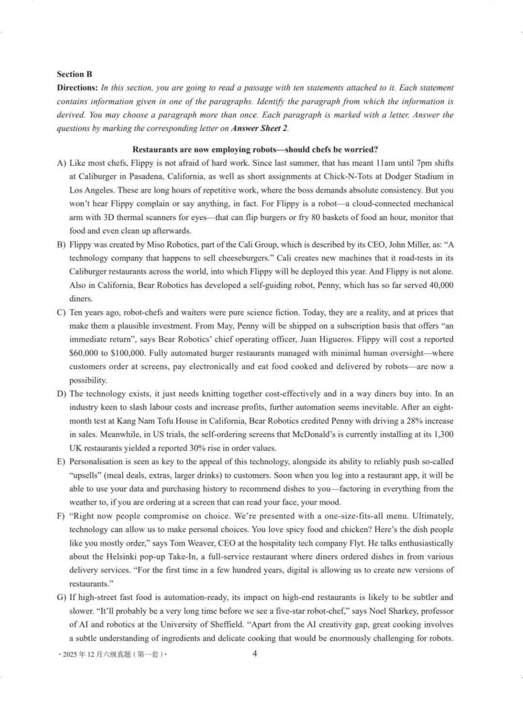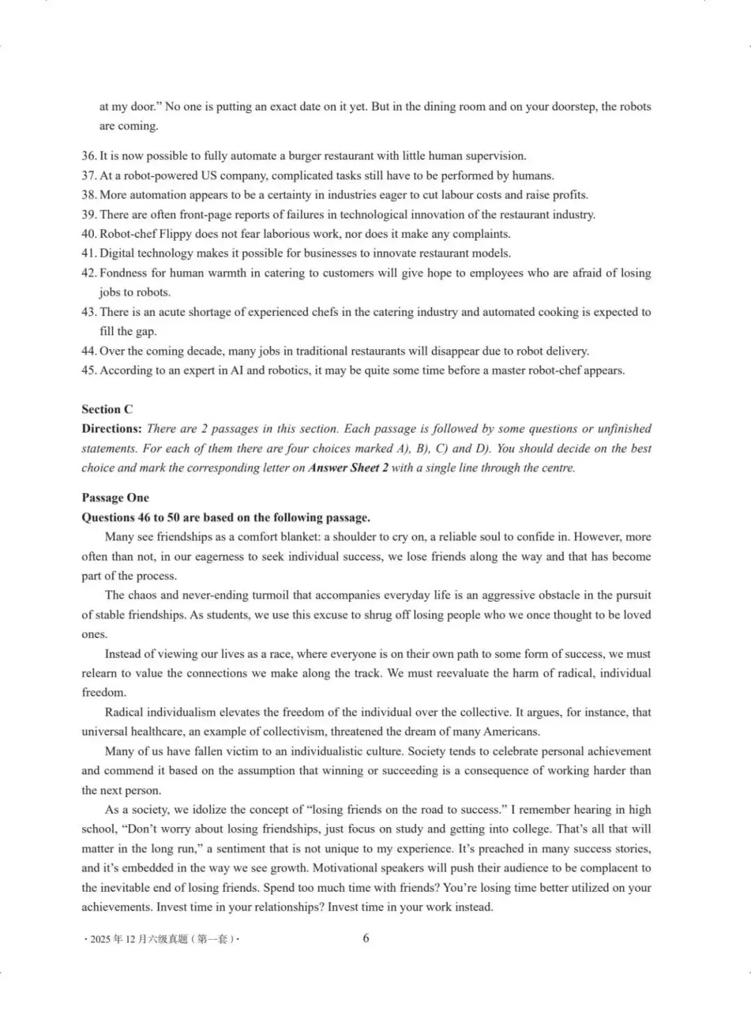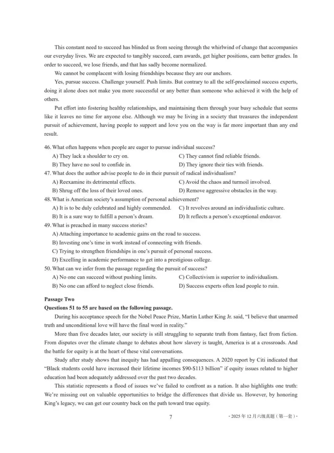 2025年12月英语四六级(三套)真题+答案完整版