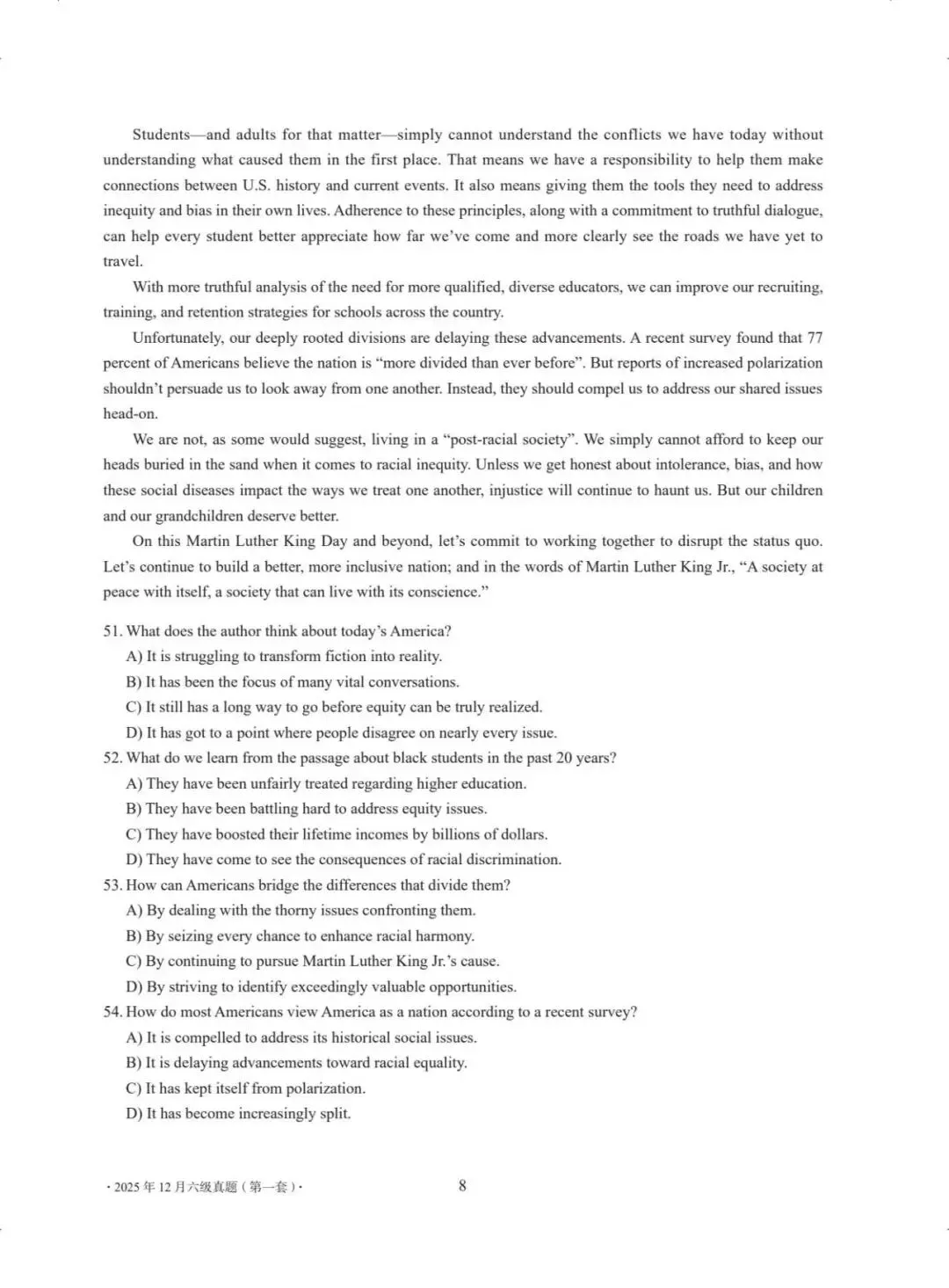 2017-2025年12月大学英语四六级原卷+答案解析(第一二三套)完整版pdf