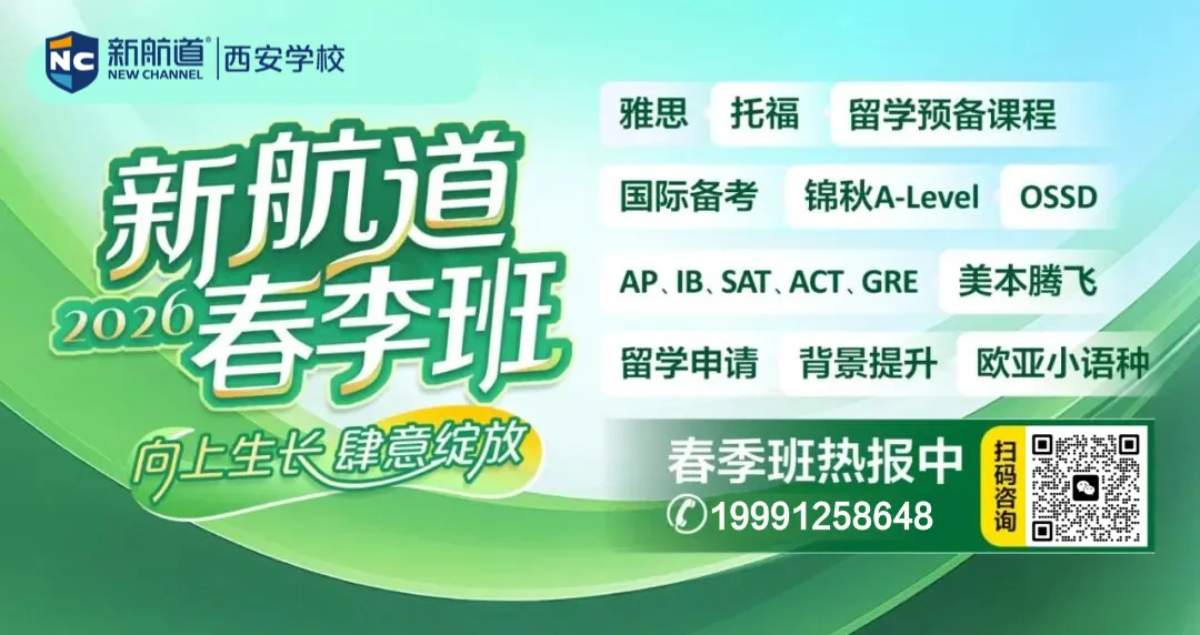 关注新航道西安学校公众号,并加星标⭐️,及时获取最新留学热点及资讯!
