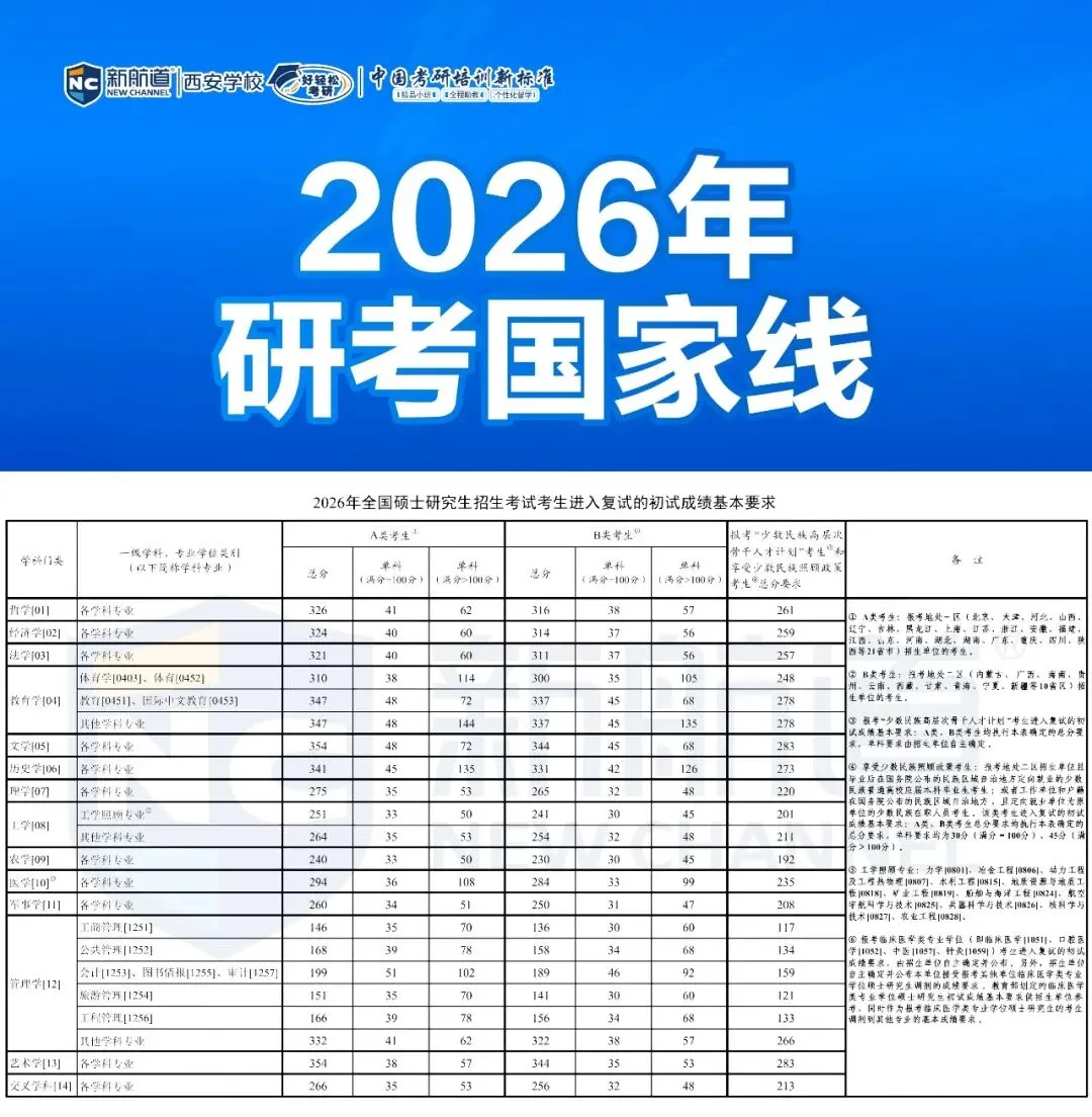 就在考研er还忙着查分,沉浸在分数带来的喜悦或遗憾之际,教育部已经正式公布了2026年考研国家线!👇