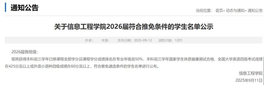 △图源:西北农林科技大学《关于信息工程学院2026届符合推免条件的学生名单公示》https://cie.nwsuaf.edu.cn/dtytz/tzgg/7f35986429c747208a6e6e4001f2630a.htm