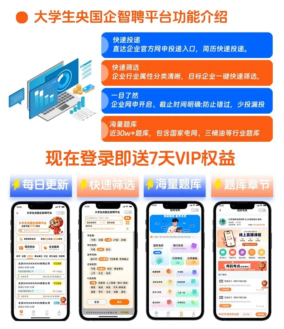 24 小时全网追踪央国企等岗位公告,过滤虚假信息; 支持城市、企业、学历等多维度一键筛选,一键投递官网。  海量真题题库,行业全,内容详细。