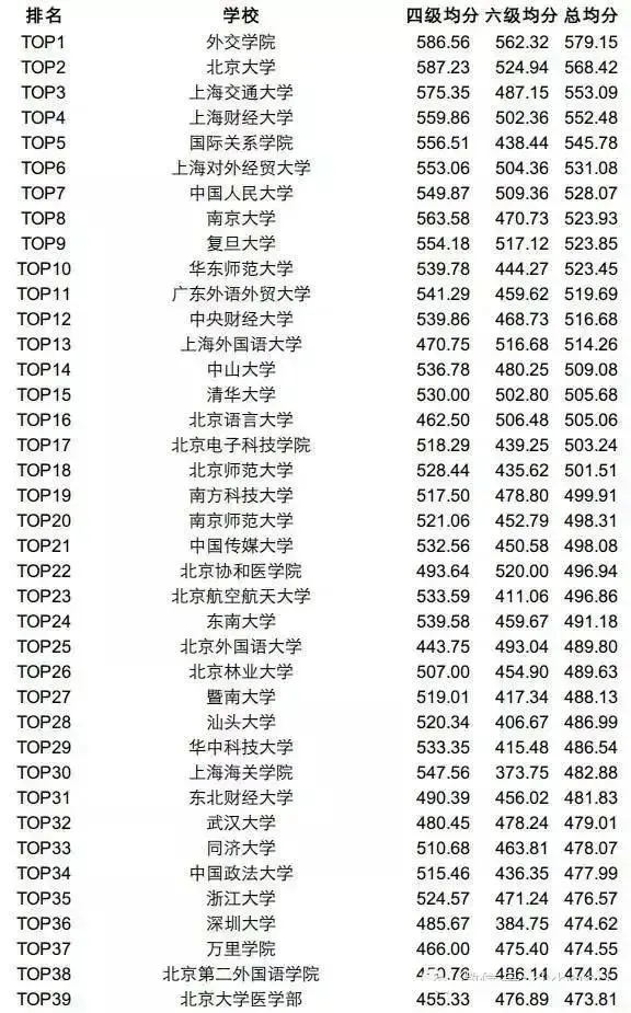 网上有一份「高校四六级平均分排行榜TOP200」!快看看你的分数有没有拖后腿!
