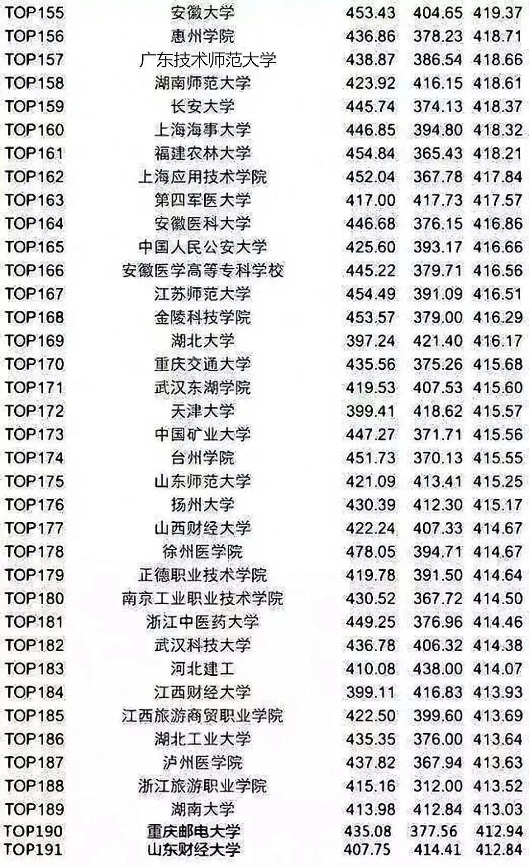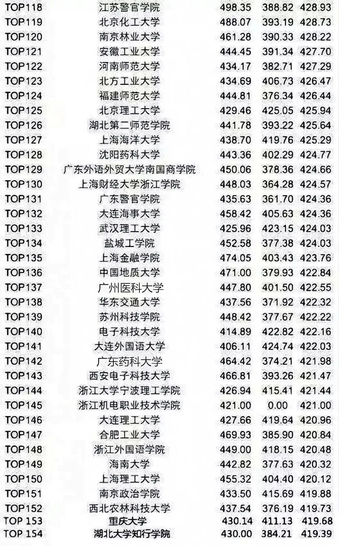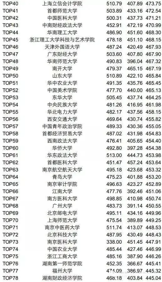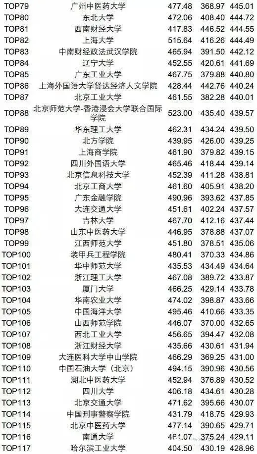 并且,以上排行榜越往下划你越会发现,很多高校的平均分,甚至还没达到过级线。