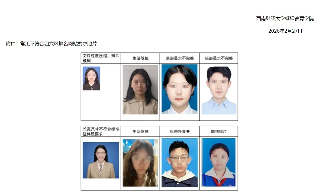 ✅️预报名方式:考生自行登录“https://xczx7.swufe.edu.cn/svue/cet/cetapply ”,按提示完成预报名流程,上传近期照片,确认预报名成功。(照片要求:一寸蓝底彩色证件照,清晰正式,无数字文字污损,无黑边及边框,禁止使用美图类软件处理,规格为宽480像素*高640像素,大小不能超过200KB)。