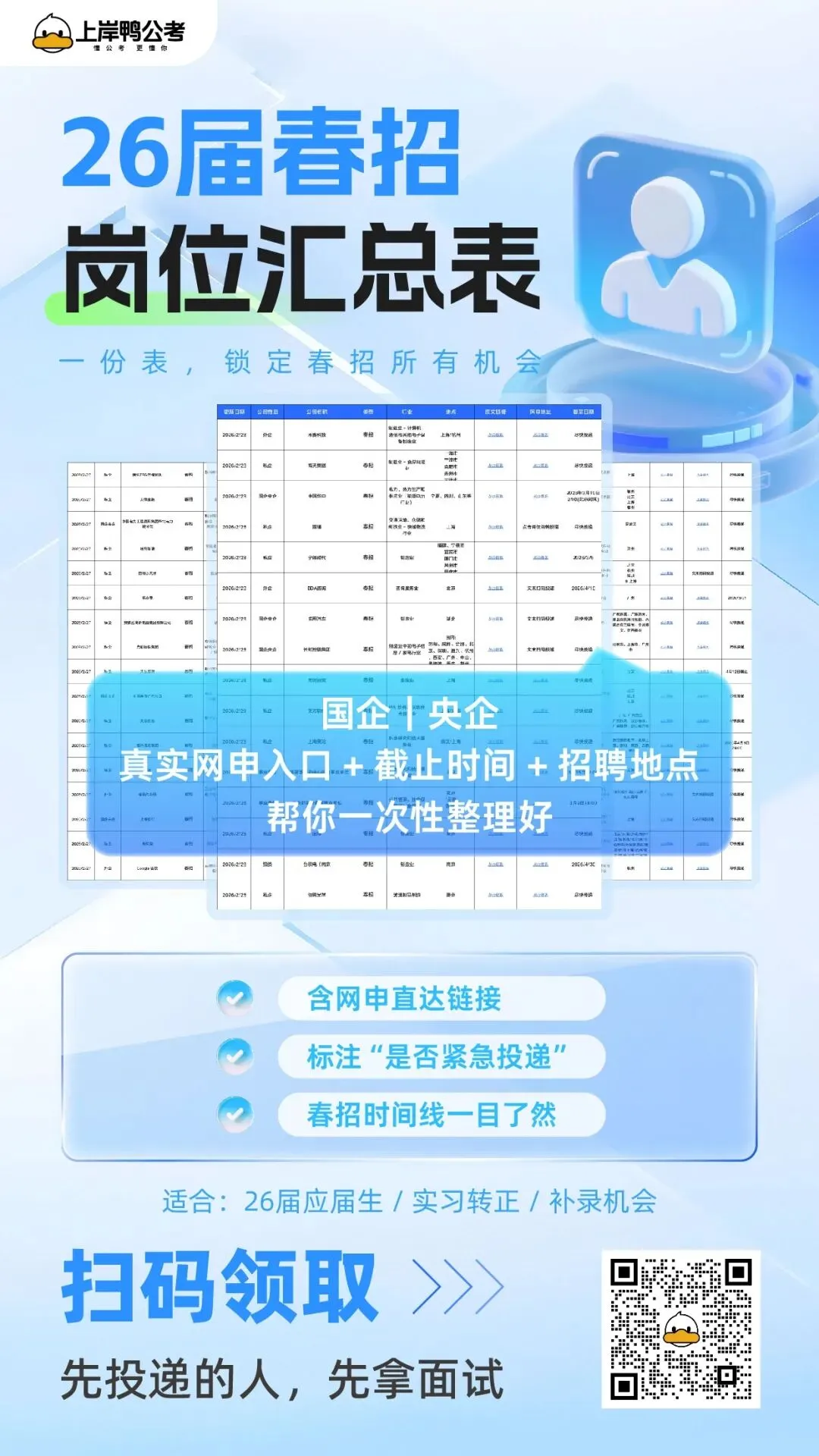最后想说,央国企“铁饭碗”从不是等来的,而是靠提前规划、精准备考抢来的!现在正是春招黄金期,赶紧对照时间线,看看自己能报哪些岗位,抓紧准备起来~