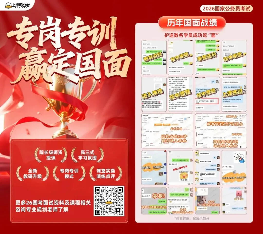 在后台回复“国考”:查询成绩领进面分数线