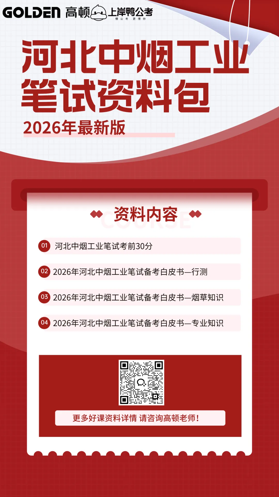 👉 想要获取这份河北烟草/中烟笔试资料包,或者了解更多课程详情,直接扫码咨询高顿老师,解锁你的上岸秘籍吧!