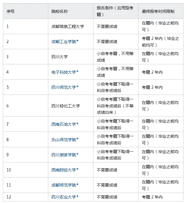 四川小自考可报四六级院校全清单