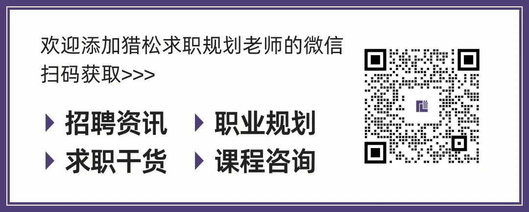 ◎ 欢迎添加猎松求职规划老师微信丨扫码获取招聘资讯、职业规划、求职干货、课程咨询