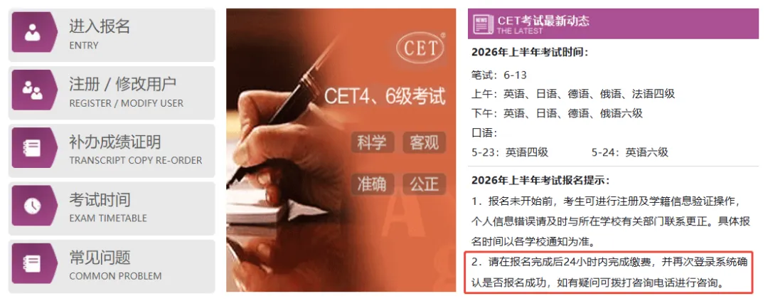 2026年上半年四、六级考试(口语)准考证打印开通时间为 5月19日,2026年上半年四、六级考试(笔试)准考证打印开通时间为 6月5日。