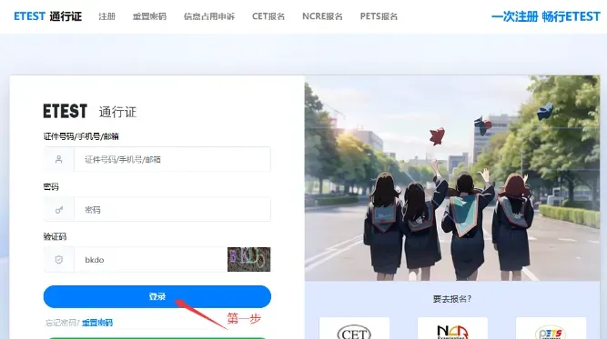 出现"同ETEST通行证重复报名",建议您在电脑端清空浏览器缓存后,重新登录网站进行报考。