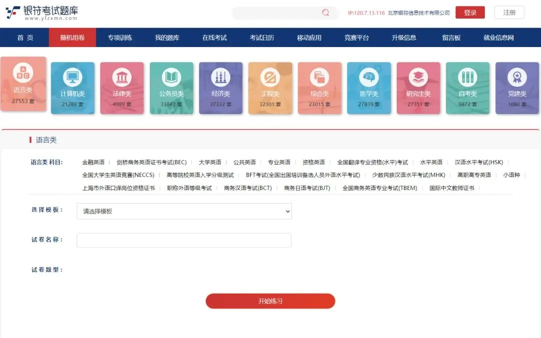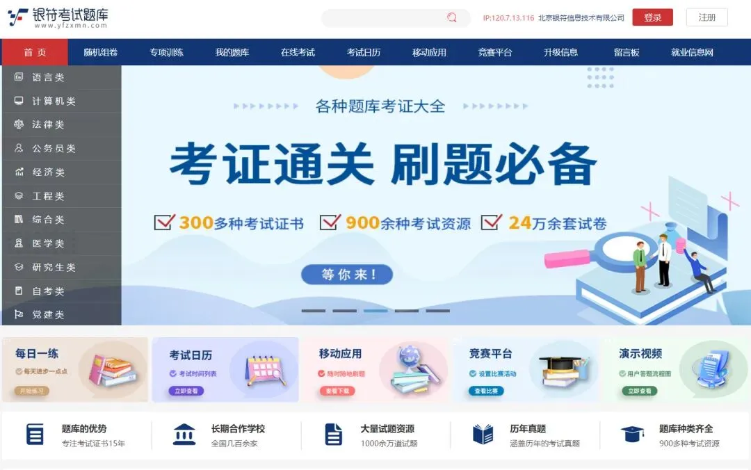 (ps:银符考试题库wap端采用IP控制,在校内通过连接校园网WiFi注册的账号可正常登录使用。)