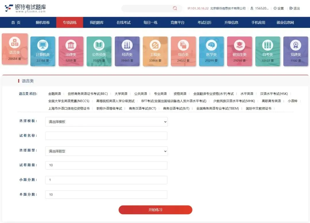 银符考试题库包含:随机组卷、专项训练、我的题库、每日一练、考试日历、升级信息、手机应用等功能模块。