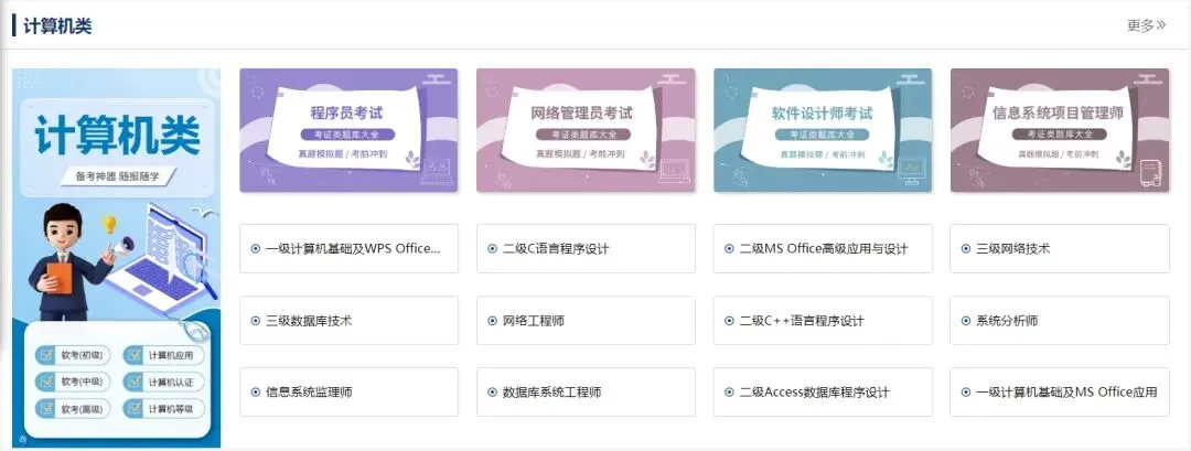 攻略:进入首页—下拉至“计算机类”—计算机各级考试