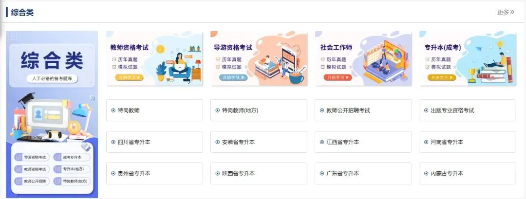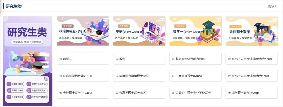 语言类、计算机类、法律类、公务员类、经济类、工程类、综合类、医学类、研究生类、自考类、党建类,一共十一大类专辑总有一款适合你哦!