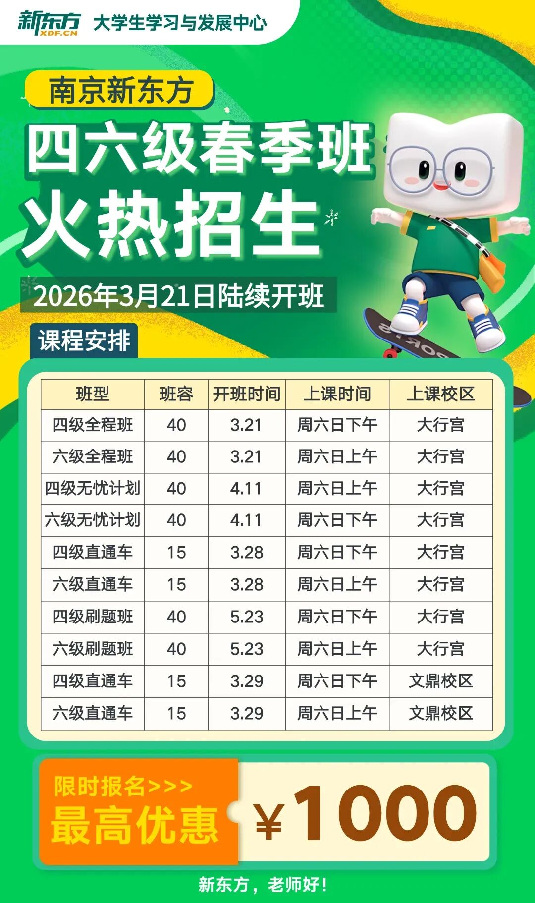 祝各位同学 2026 上半年四六级报名顺利,备考路上稳扎稳打,顺利过级、高分上岸💯!