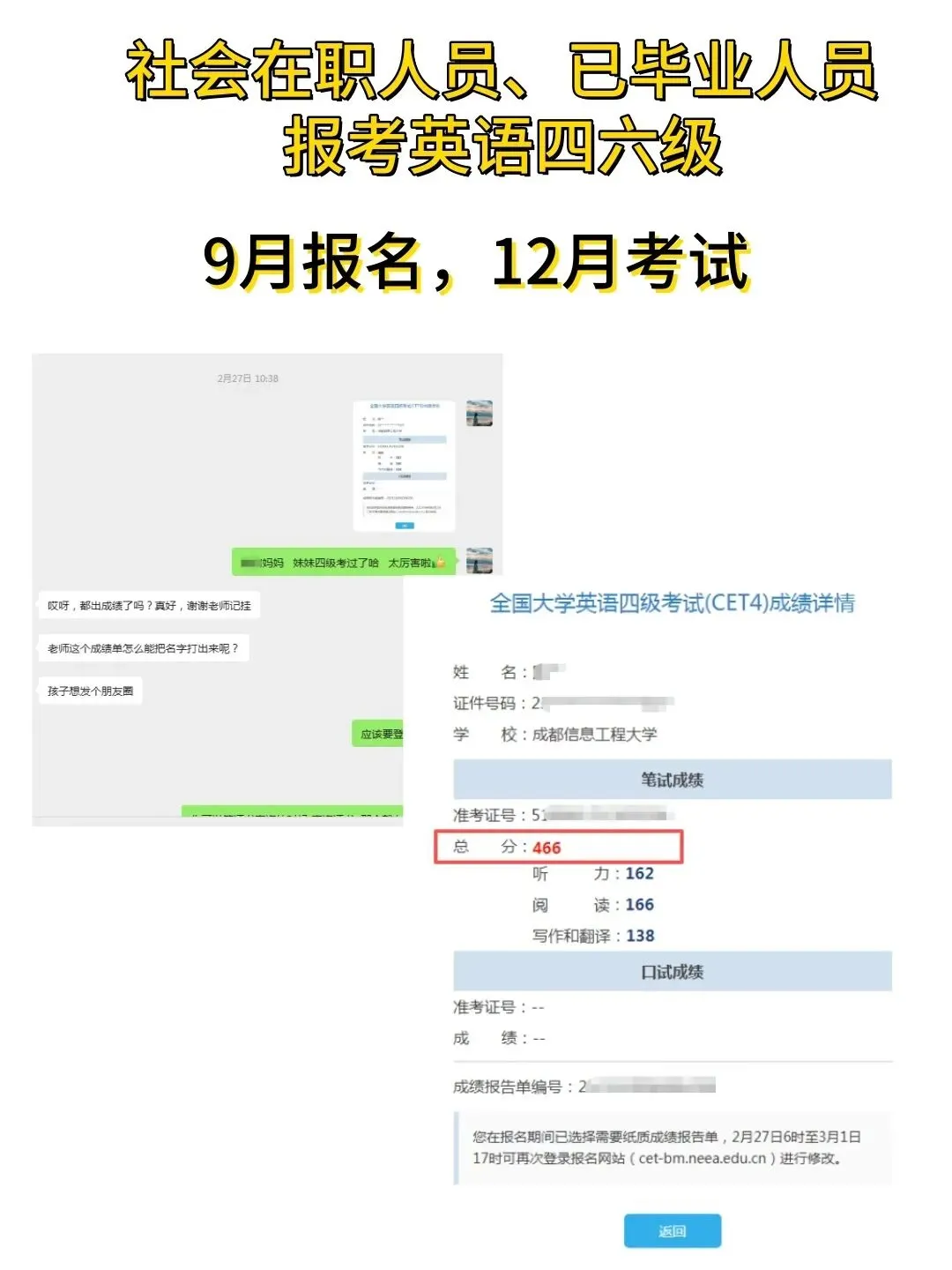 需要,需要,需要。(外省同学接受来四川参加四六级考试再咨询报名。)