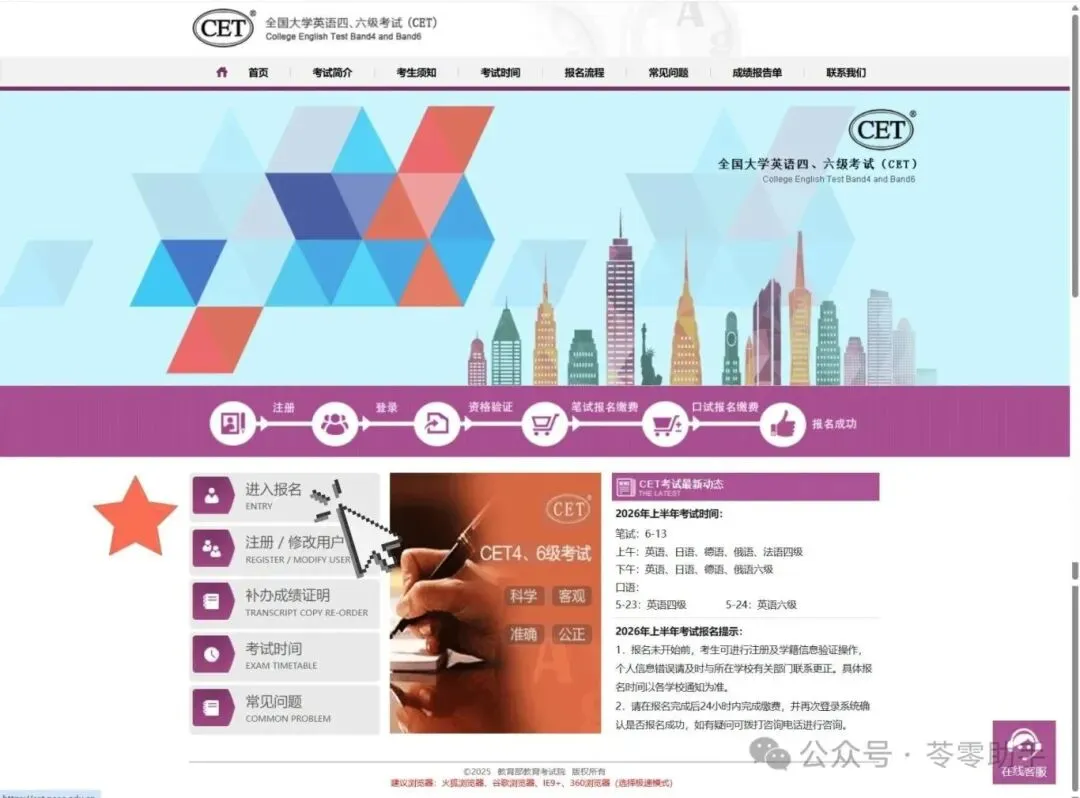 学生须在规定时间内登录全国大学英语四、六级考试报名网(http://cet-bm.neea.edu.cn)完成报考科目选择、网上缴费等报名手续,网上缴费时间截止至3月31日15:00。