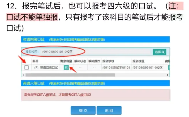 CET-SET:完成对应级别笔试报名后方可报考口试。