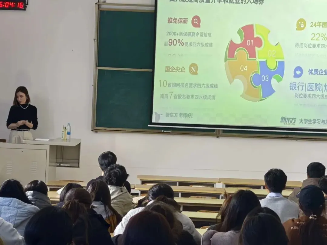 阿丽娅老师则把视角拉远,开宗明义地指出:四六级不仅仅是一场考试,更是对现在学习的检验,也是未来求职时的重要加分项。“英语能力决定了你毕业后能看到多大的世界。”