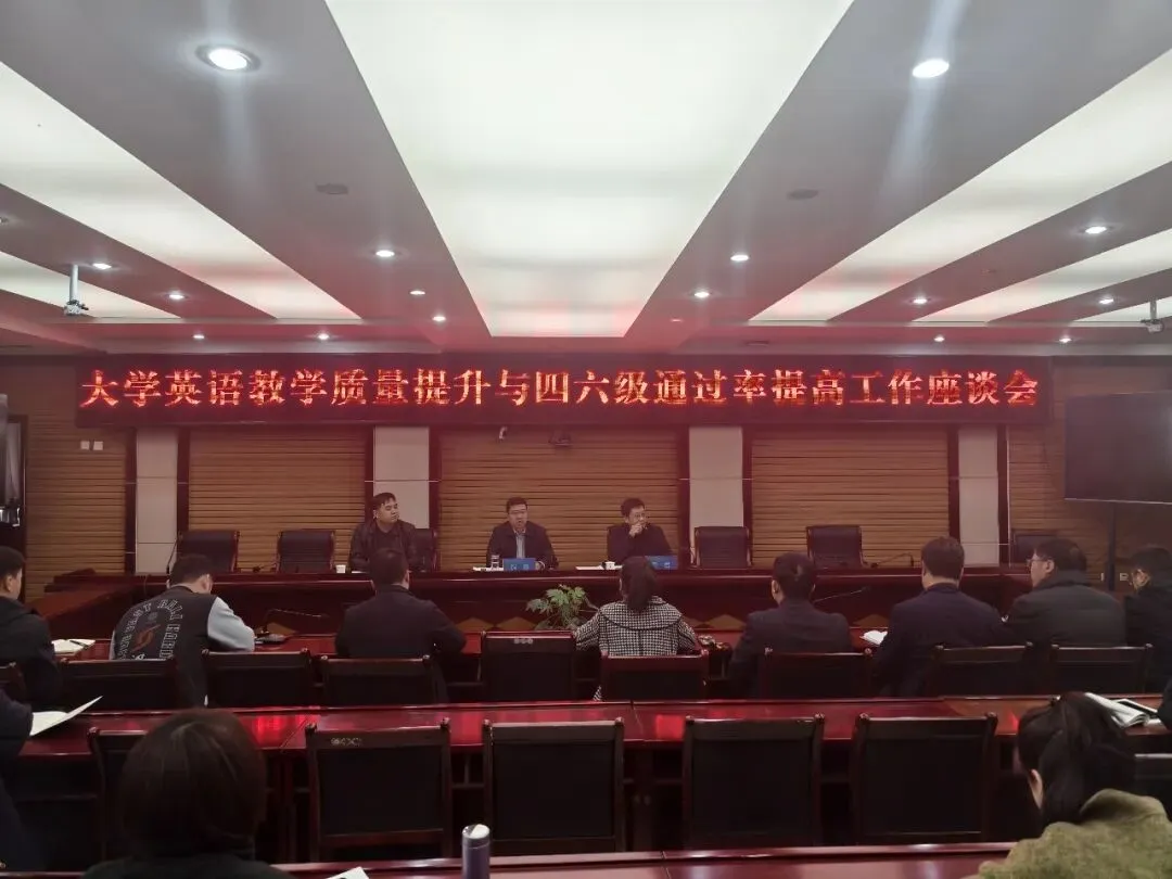 座谈会上,教务处通报了上学期大学英语四六级考试整体情况。文学与历史文化学院相关负责人作专题发言。与会人员结合学院及专业实际,分享教学管理、学风建设、辅导答疑等方面的经验做法。