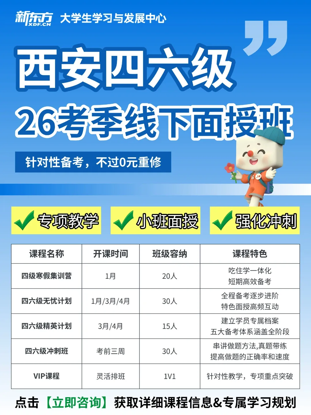 西安新东方英语四六级春季班 | 课程咨询:13379029819