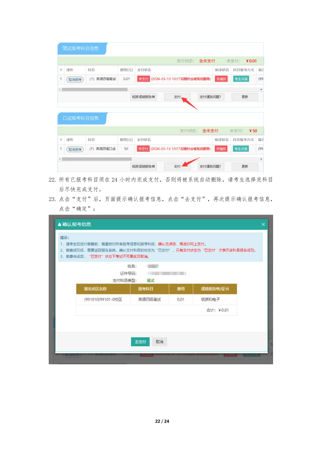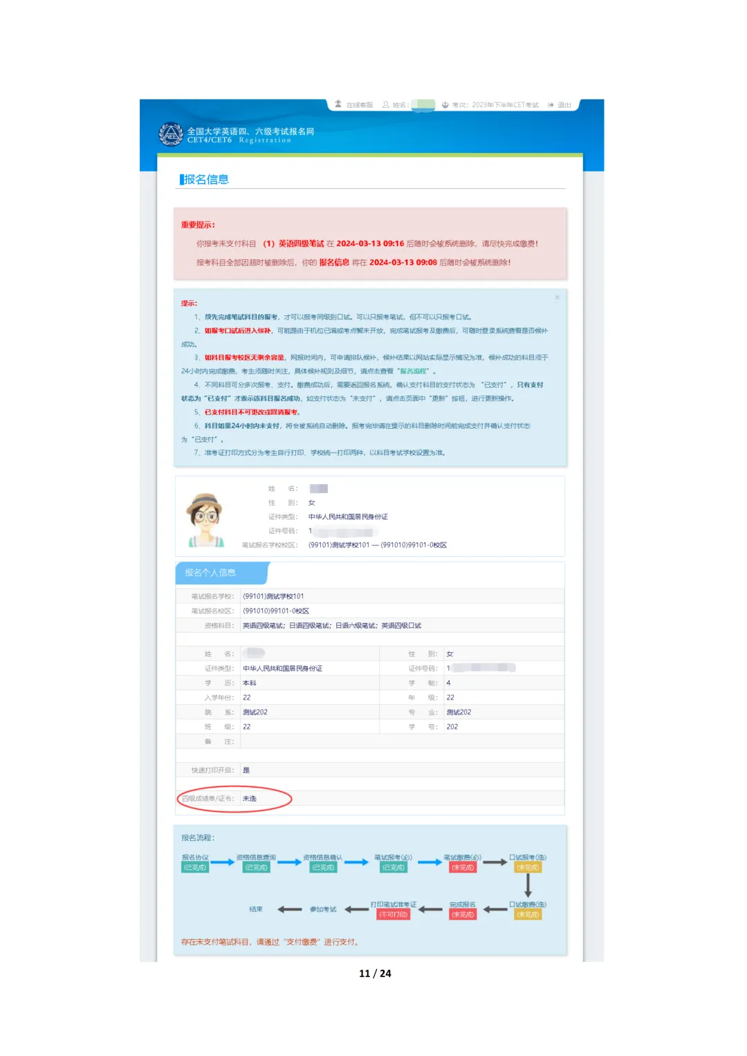 各考点报名时间不同,请考生按所在学校规定时间登录全国网上报名系统(cet-bm.neea.edu.cn)完成资格审核、笔试报名缴费及口试报名缴费。