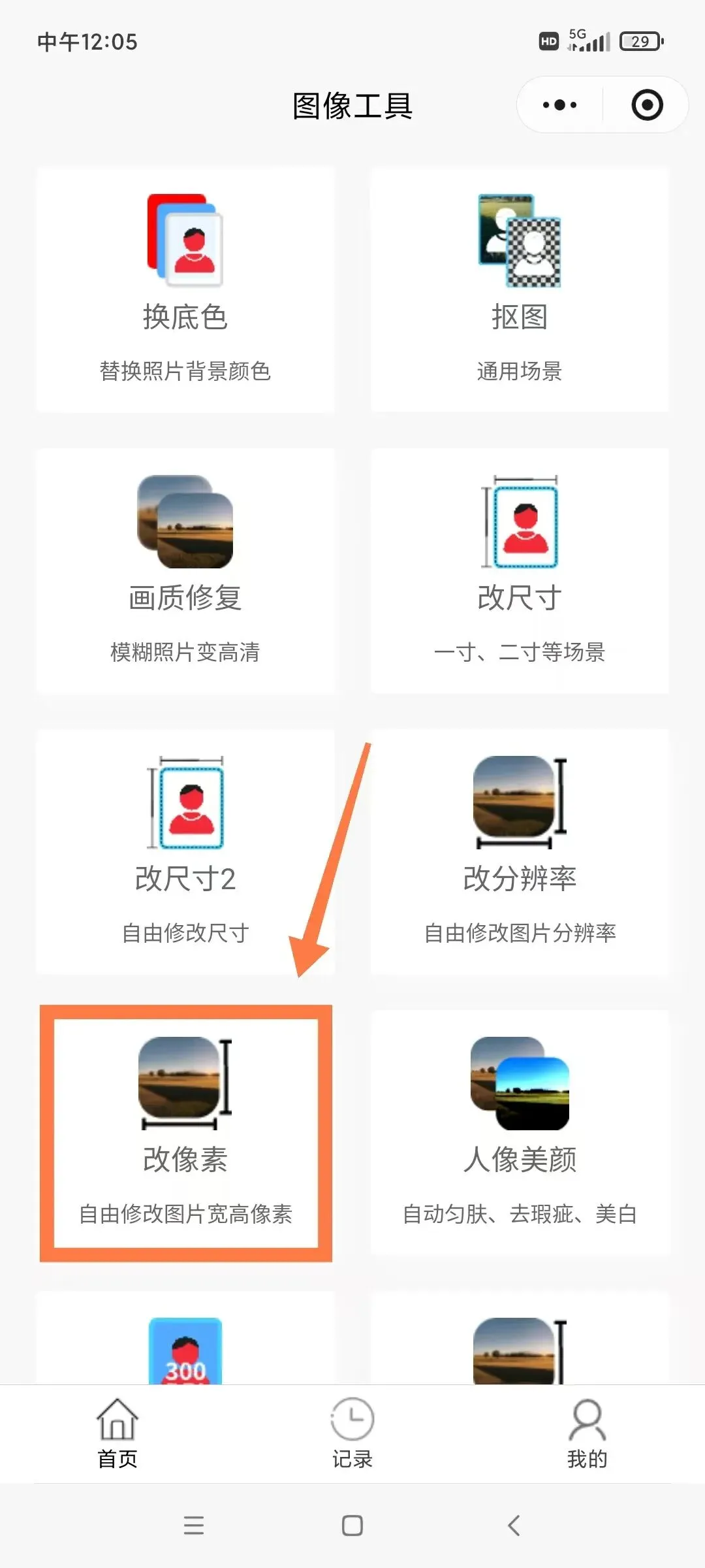 2.点进入首页之后,如果你的照片不满足底色要求,可以先改底色,然后再进入“改像素”页面。