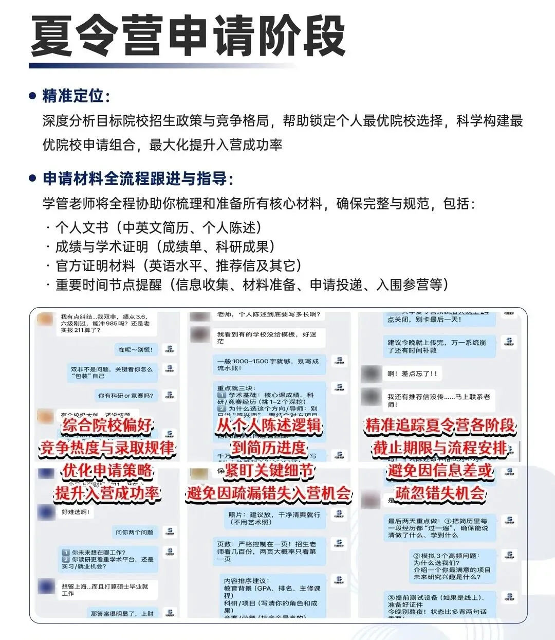 深度分析招生政策与竞争格局,学管老师全程协助梳理核心材料,最大化提升入营成功率