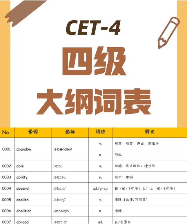 英语四六级大纲词汇高频词核心词合集链接: