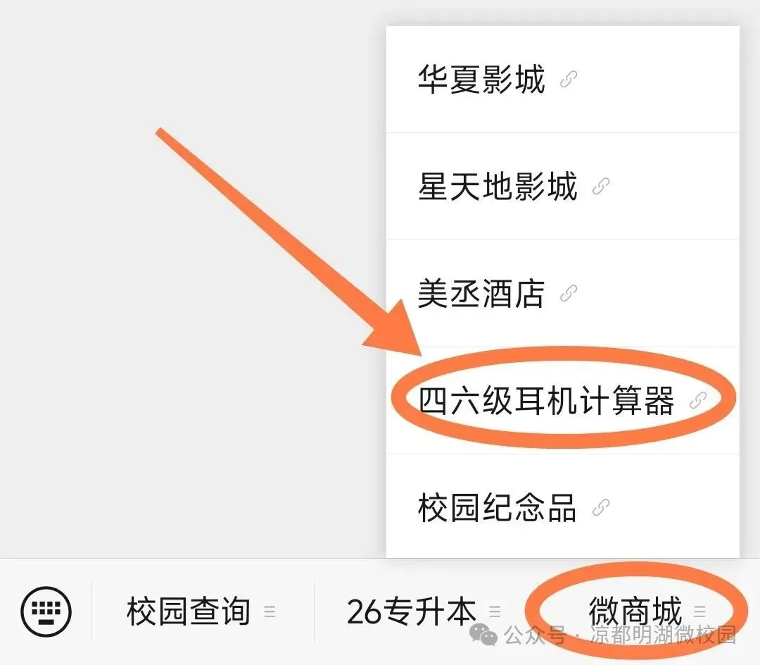 1、在凉都明湖微校园微信公众号,点击菜单“微商城”-“四六级耳机”