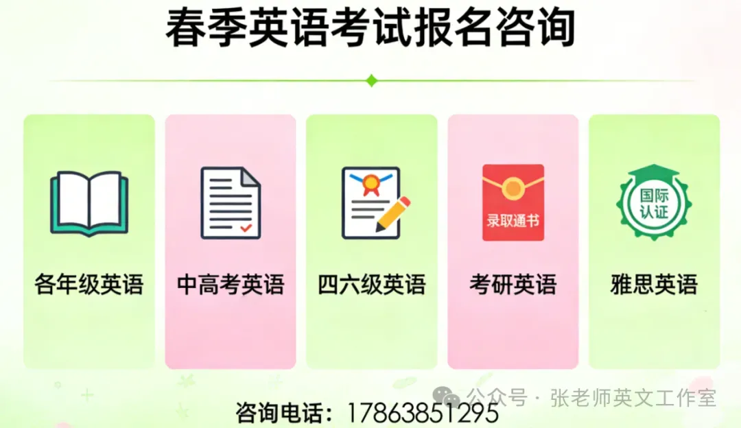 全国应试英语提分及考级咨询:张老师 17863851295(同微)学英语就找Alvin张老师!