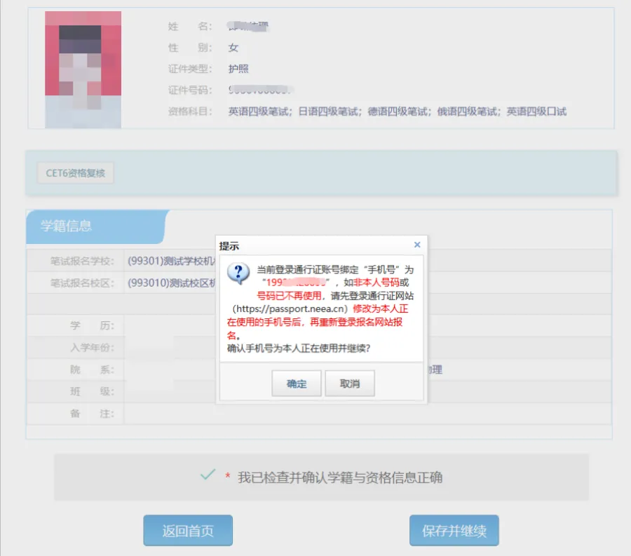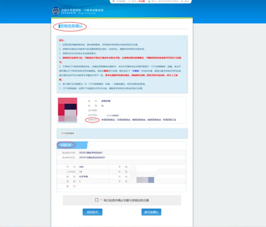 6️⃣进入资格信息确认页面,确认学籍信息、资格信息正确