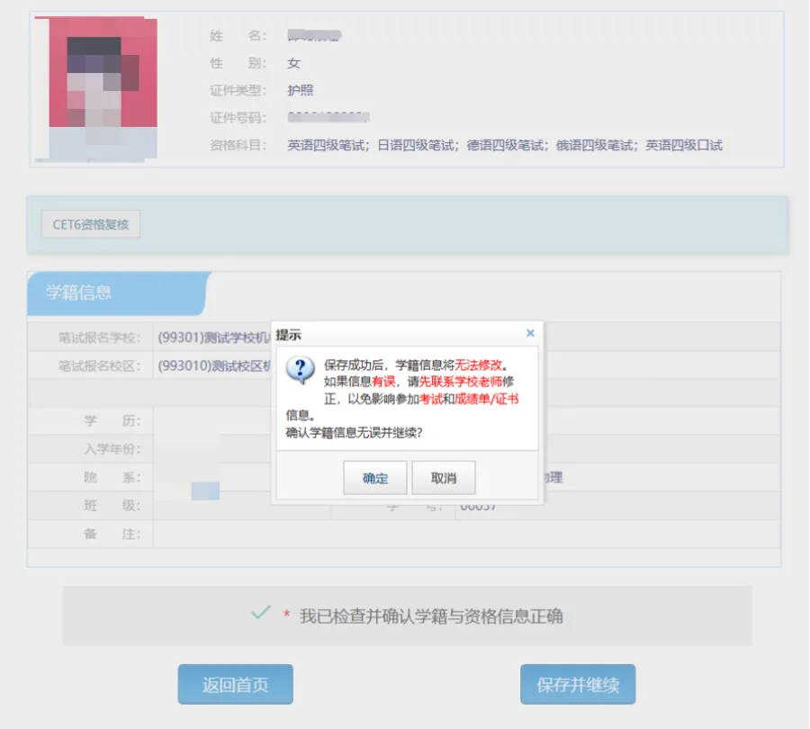检查学籍信息与资格信息无误后