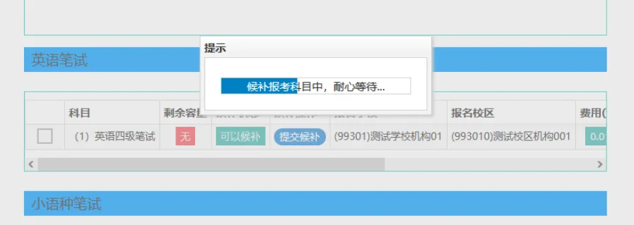 7️⃣选择笔试科目进行候补:(英语四级与日语四级无法同时候补)