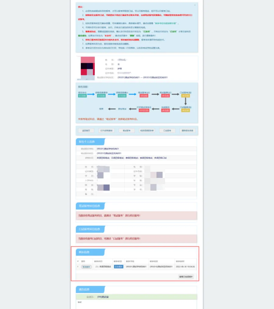 考生选择自己需要候补的校区和科目
