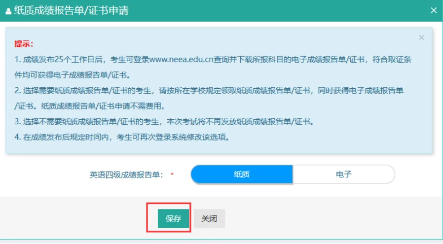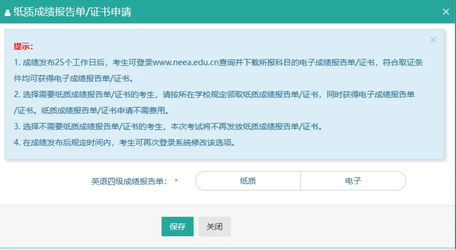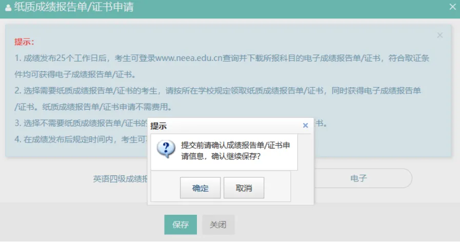 1️⃣1️⃣弹出纸质成绩报告单/证书申请界面