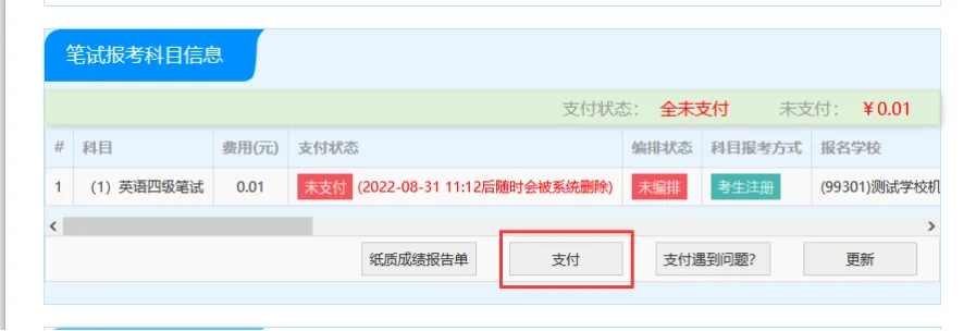 🔟报考科目确认无误后,笔试科目点击“纸质成绩报告单”按钮