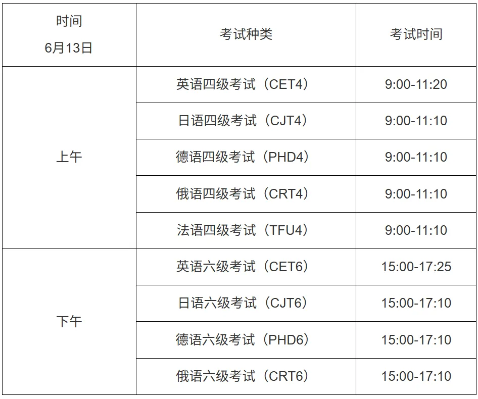 六级:四级成绩≥425 分(系统自动校验,成绩长期有效),不可跨级报考。